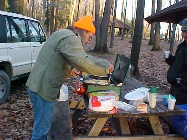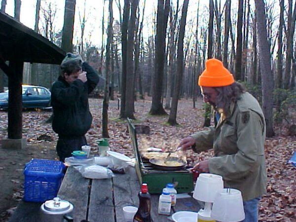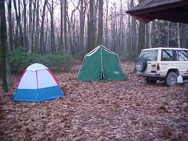 November 17th & 18th, 2001. We camped at the Moshannon State Forest. We hiked the first day to an area at the bottom of rocky hill. Total hiking distance that day was approximately 18 miles. We saw in the swampy area, an unknown footprint. On the 18th we hiked a little over 7 miles. Beautiful, wooded mountain area, plus on the night if the 17th, was the Leonids meteor storm. The sky was totally lit up at times. Truly spectacular, intense light show of meteors.